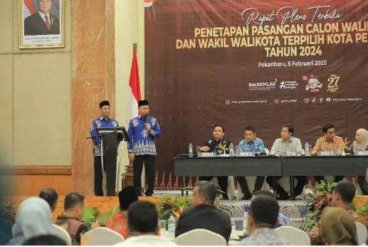 Sementara itu , Ketua Divisi Teknis KPU Pekanbaru Salmon Dalyoto membacakan berita acara Rapat Pleno Terbuka Penetapan Pasangan Calon Walikota dan Wakil Walikota Pekanbaru tahun 2024.