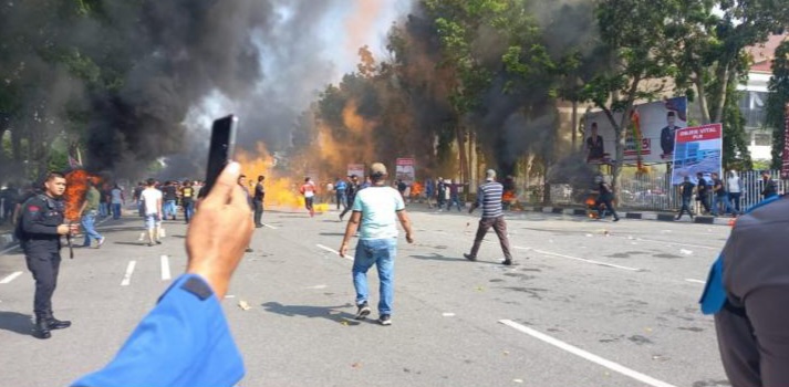 Demo Kantor KPU Riau, Ratusan Massa Dihadang Tim...