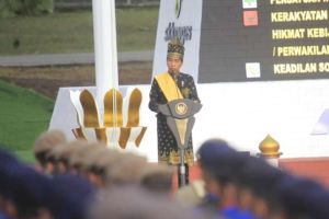 Presiden Kenakan Pakaian Adat Melayu Riau saat Pimpinan Upacara Harlah Pancasila di...